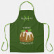 Personalised GLITTER Green Christmas Pudding Apron. Fun festive GLITTER PUDDING Christmas Apron, with faux gold glitter Christmas pudding against a forest green background. The text on the front - MERRY CHRISTMAS and the placeholder name and MONOGRAM are all CUSTOMIZABLE, so you can personalise with your own details. This festive apron would make a great Christmas gift for all the family.
