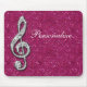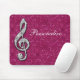 Elegant, glamourous girly personalised Mousepad. Beautiful, dazzling trendy printed image silver and diamonds bling jewels musical note on a chic hot pink sparkly glitter printed image background. A cute, classy, fashionable, stylish, pretty gift for her or any music lover.