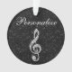 Elegant, glamourous personalised acrylic ornament. Beautiful, dazzling trendy printed image silver and diamonds bling jewels musical note on a chic black sparkly glitter printed image background. A cute, classy, fashionable, stylish, pretty gift for her or any music lover.