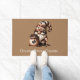 Cute and adorable coffee gnome on this doormat. Personalise it with your name, text or Welcome