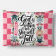God is Within Her : Psalm 46:5 Christian Accessory Pouch . A watercolor floral border in soft pinks and purples surrounds elegant gold script that reads “God Is Within Her, She Will Not Fall". personalised with name.