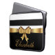 Personalised Gold, Black Bold Stripes Golden BOW Laptop Sleeve