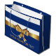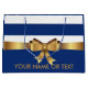 Personalised Gold, Blue Bold Stripes Golden BOW Large Gift Bag