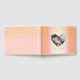 Elegant gold metallic look confetti on rose gold Guest Book. Text and picture ready to be personalised.