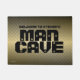 The background artwork depicts a gold metal diamond plate (tread plate) pattern. Above that it reads "Welcome to (Your Name)'s Man Cave" in a cool industrial font. Makes an awesome gift!