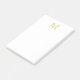 featuring personalised monogram in gold classic serif font style with box of name in the middle of monogram on white background.