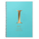 Simple, elegant yet bold faux gold foil monogram, on turquoise background.