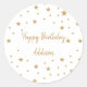 Personalised Gold Star Glitter Happy Birthday Classic Round Sticker