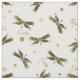 Custom name and beautiful golden dragonfly printed fabric by the yard. This pretty fabric features ornamental dragonfly illustrations adorned with simulated gold foil wings and pretty faux gold dots. A custom name is printed in a pretty cursive script and scattered around the pattern.