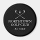 Featuring classic crossed golf clubs, golf ball design, these golf magnets are ideal for all golf clubs and club members. Personalise with the name of the golf club name and the year the golf club was established. Designed by Thisisnotme©
