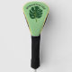 Personalised golf driver cover protector with green Monstera palm leaf. Unique gift for golfers. Cute print with tropical floral design. Elegant typography template for name or monogram letters. Trendy golfing accessories for women who love playing golf. Protect your golf clubs with monogrammed protectors. Also nice as retirement gift idea for her. Unique sports presents for golf player, friends, mum, wife, daughter, dad, husband, boss, instructor, sports coach, family, co worker, colleague, retiree, caddie etc. Green or custom colour.
