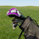 Create a personalised golf head cover with photos. A fun way to express yourself while playing golf. Customise the golf head cover with 3 photos. Modern design features purple and black colours. Also, makes a great gift. Use the template to create your own personalised golf head cover.