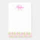 Personalised name and monogram pink and green golfing style post it pad. Customise with your own name and family name initial. Ideal for preppy or golfing girls. Designed by Sarah Trett.