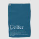 The golf towel exceeded my expectations! My husband actually approved of it! He liked the picture quality, thickness and overall usefulness of the golf towel I ordered to commemorate his lowest ever golf score. He liked it so well that I ordered 8 more towels with photos of his home golf course. Each one of the eight has the name of one of his golf group members. I will give them as party favors at my husband's 70th birthday party later this year. The different names were easy to add because the Zazzle template is so very easy to use. The colors were bright and authentic in all 9 of the towels that I made. The one of the 9 that I ordered has come out of the wash and line dry looking great.