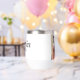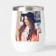 This modern stylish graduation thermal wine tumbler glass is perfect for school, and university graduation announcements or parties. features a favourite photo, names of high schools, and class of 2024.