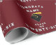 Creative graduation giftwrap for Class of '26 grad featuring black graduation cap with gold tassel on maroon background. To personalise edit text to add his or her name.