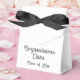 Personalised Tent Favour Boxes comes with your choice of black, white, pink or purple ribbon. You can personalise it to say whatever you want with your choice of font, font colour, etc. Other favour box styles are available.