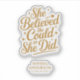 Enhance graduation decor with this inspirational vinyl decal featuring the empowering "She Believed She Could So She Did" quote in an elegant gold script. This custom cut adhesive decal is perfect for personalising laptops, windows, or any smooth surface. A wonderful way for any student to showcase their achievement and commitment to success with this motivational quote.