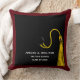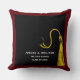Unique graduation gift pillow featuring classic black cap and gold tassel on a purple background. To personalise edit text to add graduate's name.