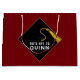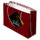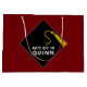 Graduation gift bag featuring classic black and gold cap on maroon background. To personalise edit text to add senior grad's name.