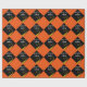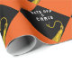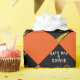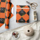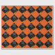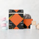 Grad giftwrap or graduation party decoration featuring black cap with gold tassel on an orange background. Edit text to add his or her name.