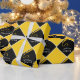 Unique graduation gift wrap and party decoration featuring congrats, black graduation cap and gold tassel design on a yellow background. Edit text to add senior graduate's name.