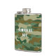 Personalised green army camouflage drink hip flask gift. Hunter camo colour print with custom text, name or quote. Army / military / hunting theme. Cool prop gift idea for dad, husband, brother, friend, boss, colleague, soldier, groom, father, uncle, grandpa etc. Funny present for him. Great for Birthday, wedding party, Christmas etc. Add your own name or funny quote.