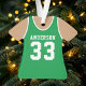 Celebrate your love for basketball with this personalised green basketball jersey ornament. Perfect for commemorating a special season, player, or team, this ornament makes a thoughtful gift for any basketball fan. Customise it with a name and number to create a unique keepsake.