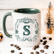 Bring a touch of festive elegance to your holiday season with this personalised green Christmas wreath mug. Featuring a classic wreath adorned with holly, snowflakes, and bells, this custom monogram mug is a wonderful gift for friends and family. Perfect for enjoying a warm drink during winter mornings or adding a festive charm to your Christmas gatherings!