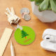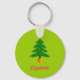 Illustration of a bright green Christmas tree. A gold star sits on top and the tree is dressed up with pink, blue and orange decorations. Personalise with a name or other text.