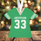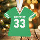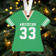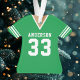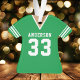 Celebrate your football star with this personalised green football jersey ornament. Perfect for commemorating a special season, player, or team. Customise it with a name and number to create a unique keepsake.