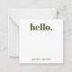 Personalised stationery enclosure notecard with a green gingham pattern in notes of deep forest sage olive garden green with the sentimental words "hello". Tuck it into a flower bouquet or meaningful gift. These minimal flower shop inspired enclosure cards bring a retro kitchen vibe to your most thoughtful moments.