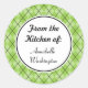 A bright green argyle pattern decorates these kitchen stickers. Change the name to personalise these stickers. Use these stylish stickers for gifts, baking, etc....The design is from original art.