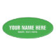 Magnetic oval name tags template with custom name for business. Personalised office supplies and accessories for corporate company office meeting or party. Add your own text, logo, surname, title discription, function, etc. to this template. Handy name badge for employee, coworker, boss, volunteers, helpers, staff, nurse, teacher etc. Also useful for weddings, events, birthdays, reunions, gathering and more. Suitable for men and women. Available in different sizes, small and large plus oval. Custom colour background. ie green. Change the quantity to get the cheapest price per label.
