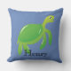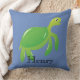 Personalised green sea turtle in blue sea pillow. Text, font, font size, colour and placement are completely customisable.