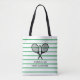 Personalised Green White Stripe Tennis Racket Tote Bag
