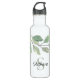 This personalised water bottle is decorated with botanical watercolor foliage in shades of green.