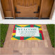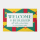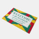 Personalised GRENADA Welcome Doormat. Stylish, patriotic WELCOME doormat with the wording WELCOME & BE BLESSED ALL WHO ENTER HERE plus placeholder name. The background is the ISLAND OF SPICE flag of GRENADA & CARRIACOU. All text is CUSTOMIZABLE so you can amend the wording to suit your needs, eg. add family name, family motto, inspirational quote.
