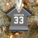 Celebrate your hockey star with this personalised grey and black hockey jersey ornament. Perfect for commemorating a special season, player, or team. Customise it with a name and number to create a unique keepsake.
