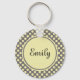Cute, personalised grey and cream-coloured polka dot, monogram keychain
