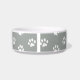 Spoil your dog with this personalised dog bowl. It has a background with dog paws on it There's a big white dog bone in the centre where you personalise with your dog's name.