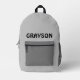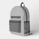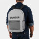 Outfit any occasion with a personalised backpack featuring your name in sleek black font! This durable bag comes in a stylish grey, easily transitioning from day-to-day life to weekend adventures.