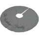 This tree skirt is accented with your family name, on an illustrated grey linen background. The Family Name is easy to personalise and curves around the outside of the tree skirt, for a timeless look.