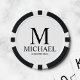 featuring personalised monogram, groomsman's name and title in black classic serif font style on white background.
