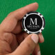 featuring personalised monogram, groomsman's name and title in white classic serif font style on black background.