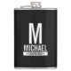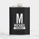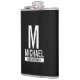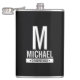 This design features personalised groomsman's monogram, name and title in white modern bold sans serif font style on black background.