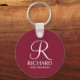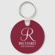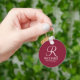 featuring personalised monogram in white elegant script font style with groomsman's name and title in classic serif font style on burgundy red background.