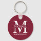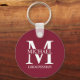featuring personalised groomsman's monogram, name and title in white classic serif font style on burgundy red background.