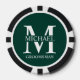 featuring personalised groomsman's monogram, name and title in white classic serif font style on emerald green background.