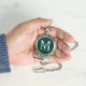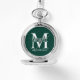 featuring personalised groomsman's monogram, name and title in white classic serif font style on emerald green background.